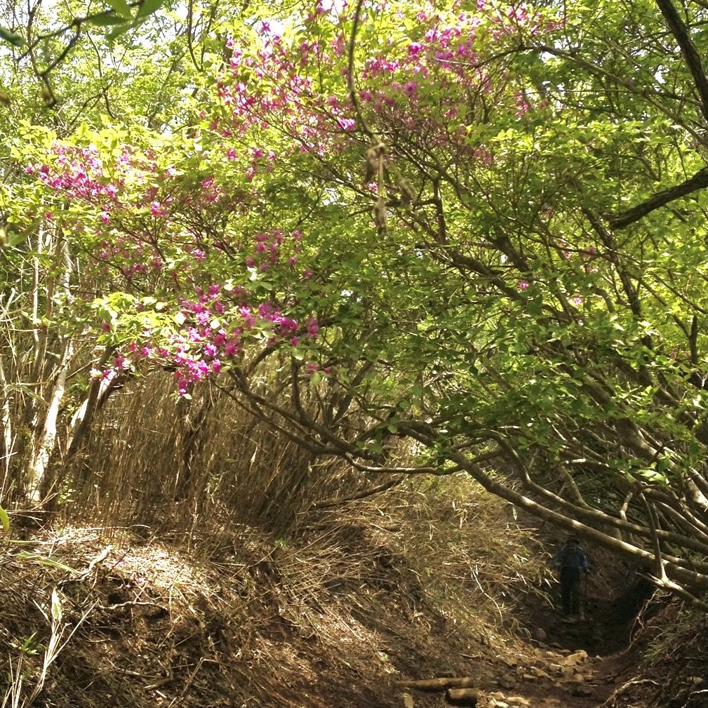 いま、やまつつじが、まっさかり。つつじトンネルコースも、まさにいまがみごろです。きょうはお客さんがいないので、ばあばぐまとおさんぽしてきましたよ。