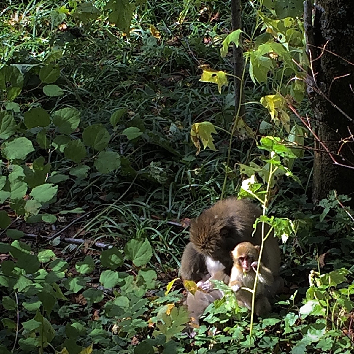 たらふく木のみをたべたあとは、しばらくそとのおふろのあたりで、かたをよせあって、まったり。