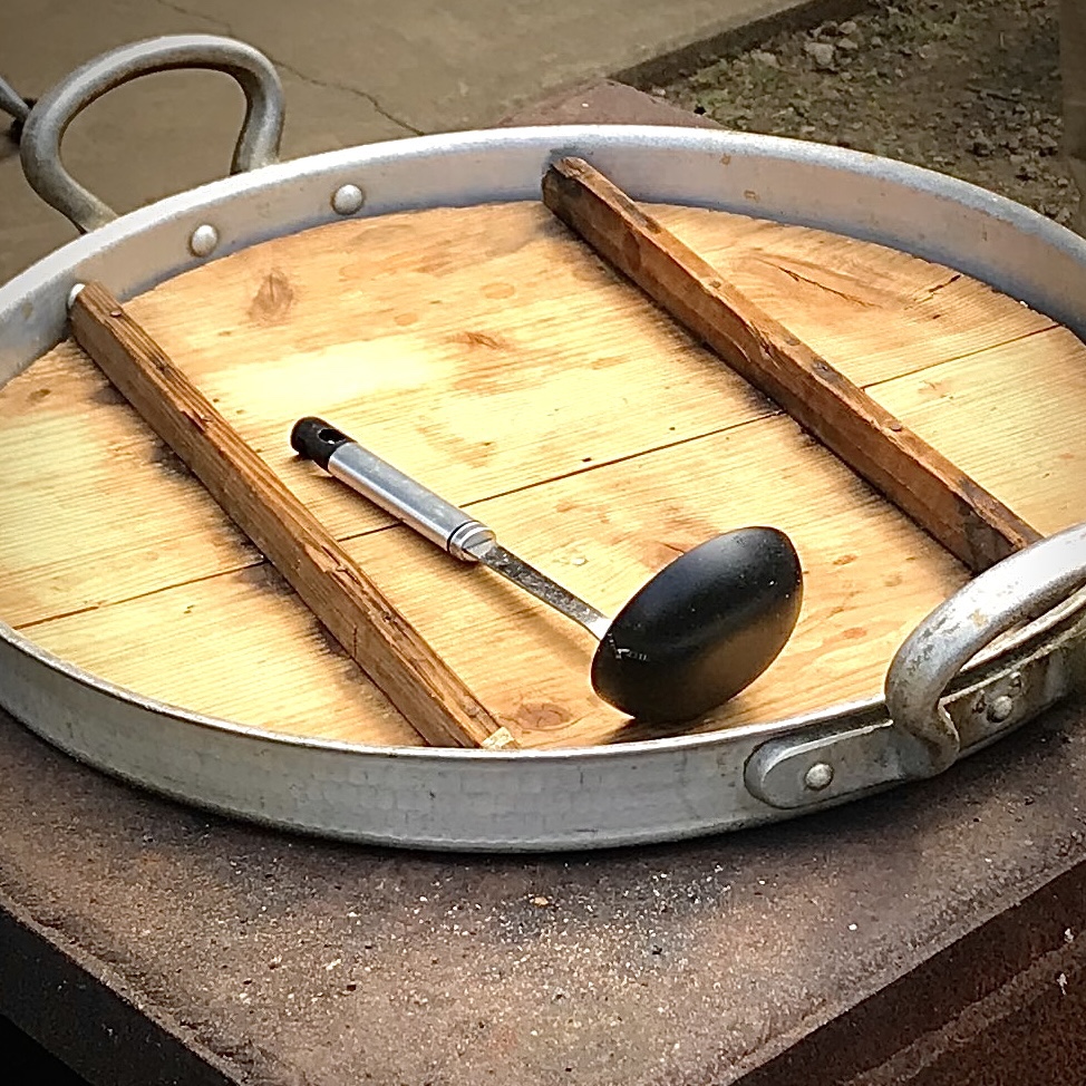 きょうは、このおなべいっぱいに、とん汁をつくりましたよ。