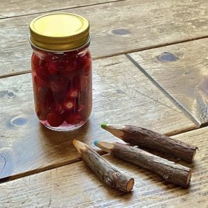 お宿のうらやまでつんできたきいちごミックスを、奥さんのとくせいシロップでつけこみました。ヨーグルトやアイス、寒天にそえてめしあがれ。
